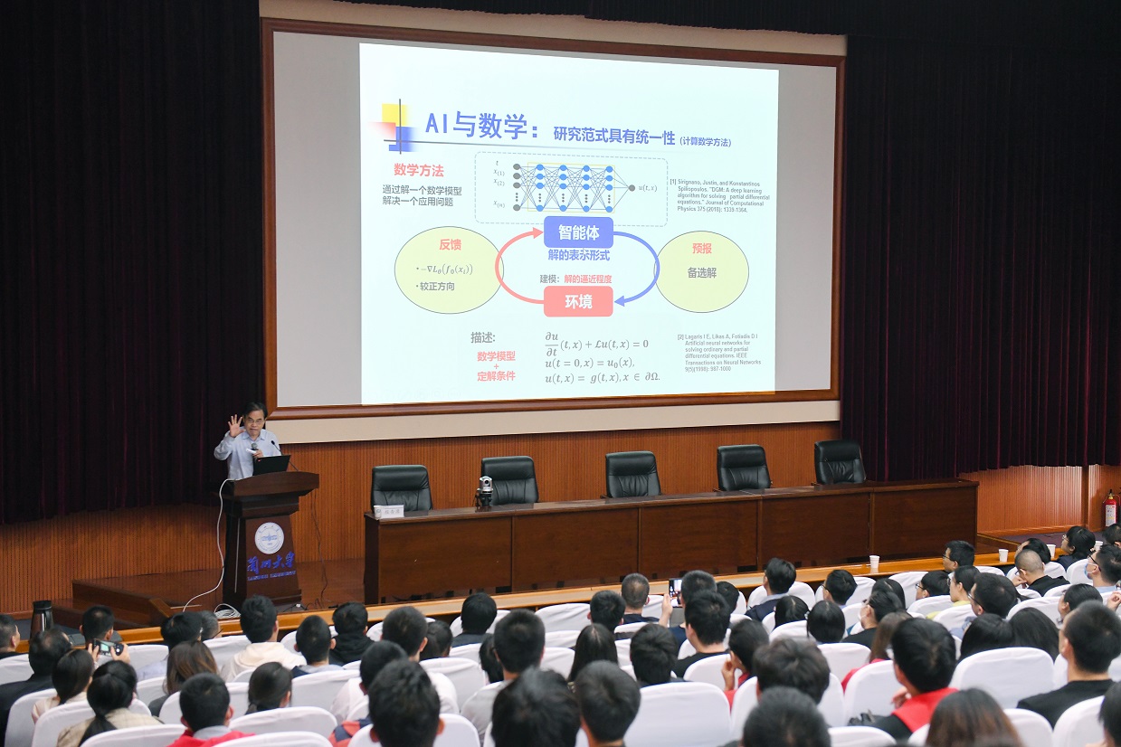 论坛邀请了10位中科院院士和国内数学领域的资深专家作学术报告。北京大学张平文院士作题为“大数据学术创新链”的报告; 西安交通大学徐宗本院士作了题为“AI的10个重大数理基础问题 ”的报告;北京师范大学-香港浸会大学联合国际学院、南方科技大学汤涛院士作“圆周率计算与现代计算数学”的报告,中国科学院数学与系统科学研究院周爱辉研究员作“数学视角下的电子结构模型与计算”的报告,欧洲科学院外籍院士、中国科学院自动化研究所脑网络组研究中心蒋田仔作研究员“脑网络组图谱及其在脑认知和脑疾病研究中的应用”的报告,上海交通大学、欧洲科学院院士金石作“Random Batch Methods for Molecular Dynamics”报告; 复旦大学程晋教授作“基于数据和机理的信息提取的理论与算法”的报告;南方科技大学荆炳义教授作“Point of Interest Recommendation”的报告;云南大学唐年胜教授作“Quantile Correlation-Based Variable Selection”的报告;北京大学胡俊教授作“Conforming Finite Element Gradgrad and Divdiv Complexes”的报告。