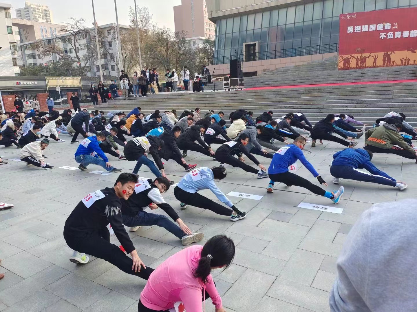 本次长跑火炬接力活动,新增设了导学团队接力环节,共有来自31个学院代表队、31组导学团队的700余名运动员参与其中。我院徐守军老师代领部分研究生参加了接力活动。各学院团队一道以长跑接力铭记历史,用火炬传递传承精神,让爱国之红成为这个冬日兰大青年的鲜亮底色。