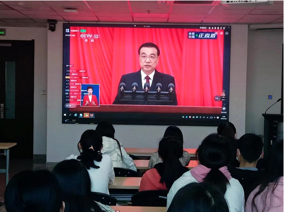 2023年3月5日上午9时,第十四届全国人民代表大会第一次会议开幕式在北京召开。数学与统计学院全体师生热切关注大会进程,3月5日上午9时,数学与统计学院组织学院师生代表在理工楼631和518教室分别集中收听收看大会开幕式。开幕式结束,师生热议两会内容,积极交流心得感受。