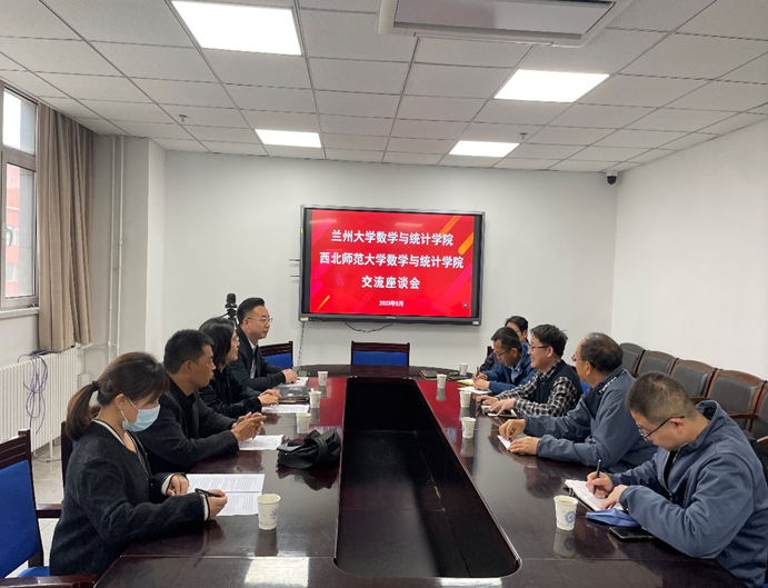 会上,陈吉平代表学院对西北师范大学数学与统计学院各位老师的到来表示欢迎。赵学靖从师资力量、专业设置、学生培养、实习基地建设、行业导师选聘、学科建设等方面介绍了应用统计专业的相关情况。接着,双方就应用统计专业建设遇到的瓶颈、困难以及下一步的工作举措进行了研讨交流。