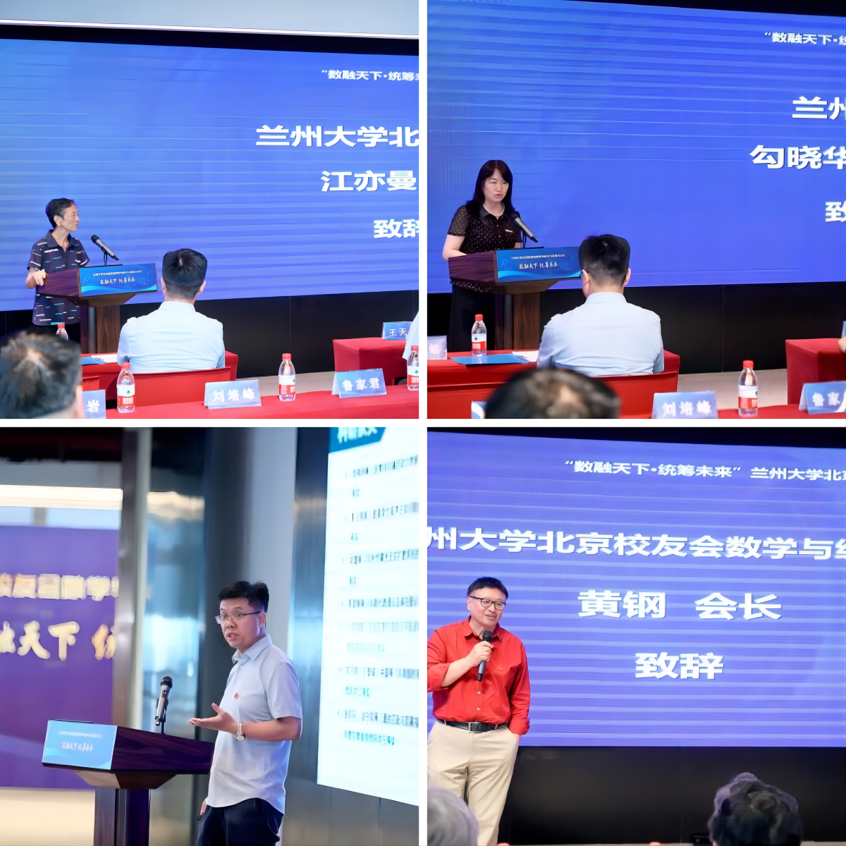 会上,北京校友会会长江亦曼江会长首先致辞,江会长首先感谢学校的大力支持与协助,江会长谈道:不见大漠,不知西北之辽阔;不见胡杨,不知生命之辉煌;一代又一代的兰大人自强不息,独树一帜;而数学人厚德尚学,数往知来是兰大数学人精神最直接的体现,希望兰大校友们能够始终为母校、为自己所活跃着的领域持续迸发,积极进取,发挥兰大精神。随后勾晓华副校长致辞谈到,114年校史,沉淀的不仅仅是荣耀,更是不甘平凡、创造奇迹的兰大品格;兰州大学始终坚持扎根西北,办好中国特色世界一流大学,校友是学校发展过程中一股不可忽视的强大力量,在竖立学校品牌、发挥资源优势、共创合作机遇等方面学校希望和校友始终保持紧密联系,更好助力双方协同发展。数学与统计学院院长邓伟华致辞谈到,惊叹各级校友所获取的巨大成就以及背后蕴藏的宝贵经验财富,母校、母院将持续发力助推校友工作;邓伟华院长也就学院学科建设、科研进展等问题进行了介绍。