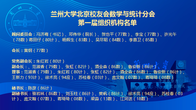 数学与统计分会的成立也得到了来自兰州校友会和北京各兄弟分会的大力支持,数学与统计分会将和各兄弟校友会、各地校友会一道,共同致力于校友事业,助力母校。
