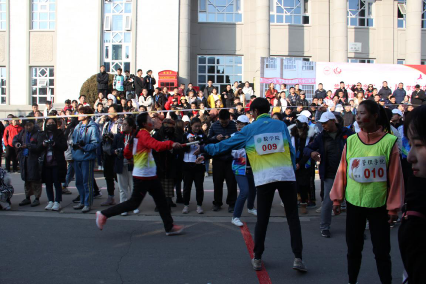 开幕式开始,知识竞赛和历史视频带领同学们重温了那段光荣岁月。紧接着,在场同学集体合唱爱国歌曲《我和我的祖国》,同学们用铿锵有力的歌声汇成最坚定的信念,长跑比赛也拉开了帷幕。每一位参赛运动员都竭尽全力,不畏严寒,奋勇拼搏,彰显着艰苦奋斗的兰大精神。数学与统计学院的运动员们步幅矫健有力,拼尽全力,稳中求进。同学们热情洋溢的呐喊助威声也此起彼伏。最终,比赛的颁奖典礼在闻欣堂门口举行,取得优秀成绩的学院受到了表彰。此次比赛在老师同学们的欢声笑语中落下帷幕。