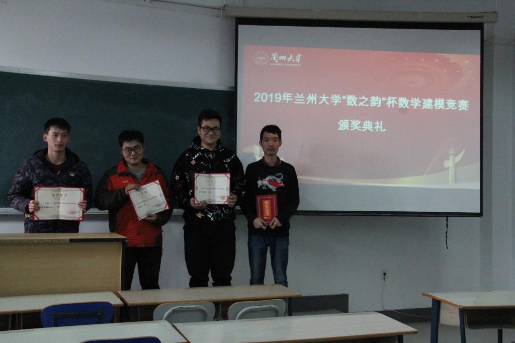 2019年12月6日星期五下午16:30,在天山堂B401教室隆重举行了兰州大学“数之韵”杯数学建模竞赛的颁奖典礼。本次典礼由数学与统计学院团委学生会副主席兼建模协会秘书长万佩泽主持,由数学与统计学院团委学生会主席申子恒颁奖。