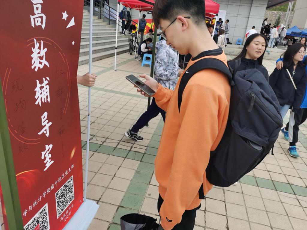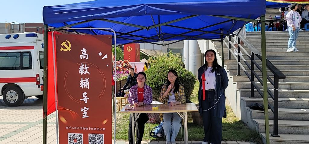 为庆祝中国共产党成立100周年,激励青年学子学史力行,从党的百年伟大奋斗历程中汲取继续前进的智慧和力量,引导学生党员牢记“全心全意为人民服务”的根本宗旨,进一步弘扬和践行“奉献、友爱、互助、进步”的志愿服务精神,结合学院学科特色,发挥专业优势和学习资源优势,进一步扩大高数义务辅导答疑活动覆盖范围,数学与统计学院于校运会期间在后勤点开设高数答疑点,并安排十八位学生党员作为现场志愿者,为各院同学分享高数学习宝贵经验,为同学们答疑解惑。